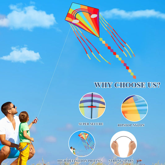 Diamond Rainbow Kite, Easy-Fly Kite for Beginners, Perfect for Kids and Adults, Ideal for Outdoor Activities