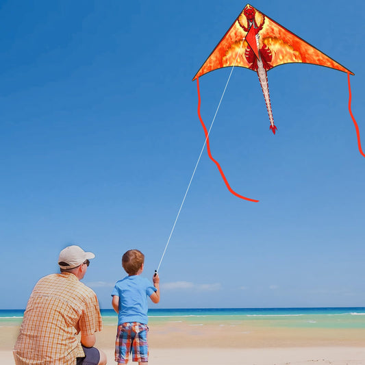 Dragon Kite for Kids & Adults, Easy to Fly Best Beach Kite for Red Fiery
